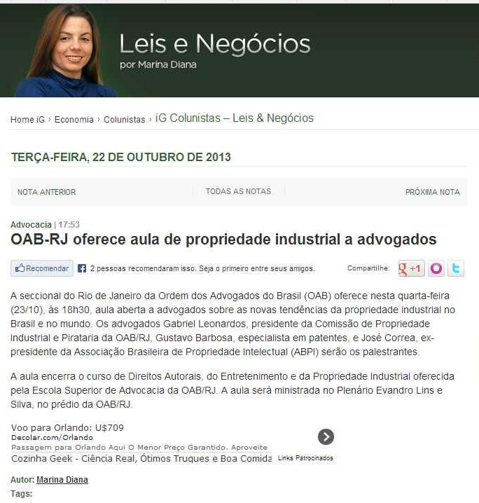Site iG. Coluna Leis e Negócios.